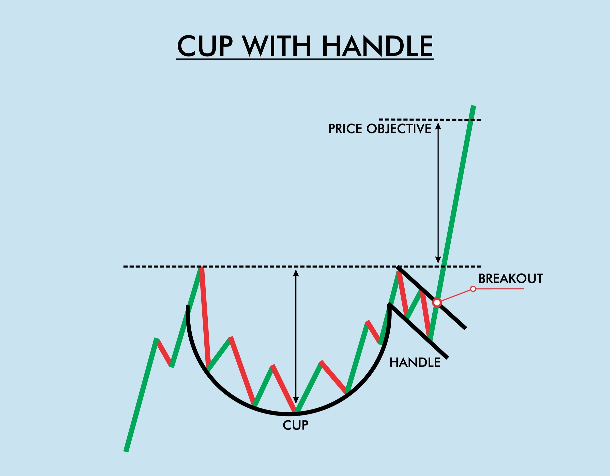 손잡이가 달린 컵(Cup and Handle) 패턴은 전설적인 투자자 윌리엄 오닐(William J. O'Neil)이 1988년에 출간한 그의 저서 『최고의 주식 최적의 타이밍(How to Make Money in Stocks)』을 통해 처음으로 체계화되고 대중에게 알려졌습니다.